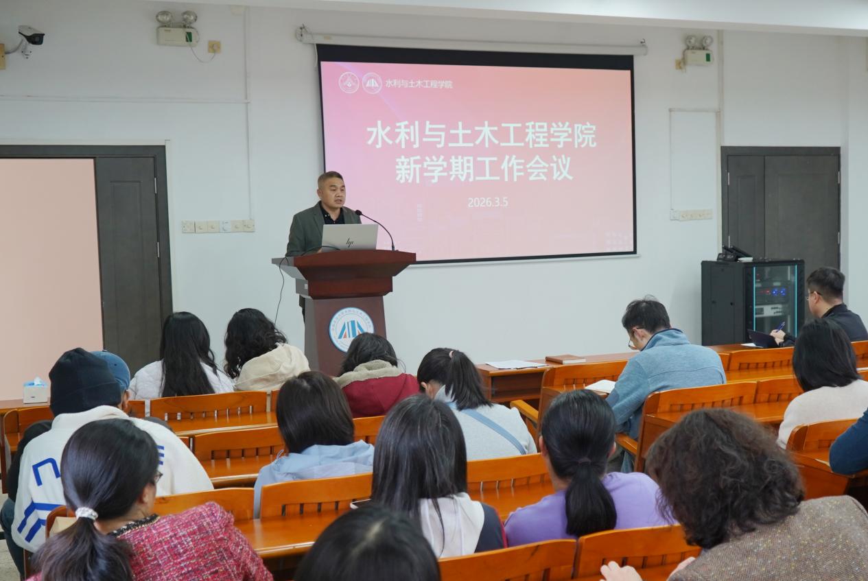 为深入贯彻落实学校春季战略研讨会工作部署要求,统筹推进各项任务精准落地,学院新学期工作会议于2026年3月5日下午在院楼301举行,学院全院教职工参加会议。会议由学院党委书记叶晖有主持。