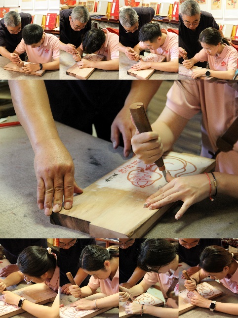实践团成员王昊然提出:“杨老师是如何将木版年画这项传统手艺与现代审美相融合的呢?”杨老师讲述了年画的悠久历史与独特的艺术价值,阐述了如何将传统手艺与现代审美相结合,尤其是在创作《原神》游戏中“五夜叉”形象的年画作品时所进行的创新尝试。杨老师还提及了他的徒弟韩泽生先生,一位《原神》游戏的爱好者,其受到纪录片《流光拾遗之旅——仙闻篇·木版年画》的吸引,几经周转,联系到杨老师,专程从从沈阳赶赴潍坊,来学习和了解木板年画技艺。实践团成员在杨老师的指导下亲身体验了木版年画的制作过程,更加深入地理解和欣赏了木版年画这一传统技艺,感受到在现代社会中,传统文化依然可以焕发出新的生命力。