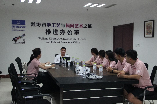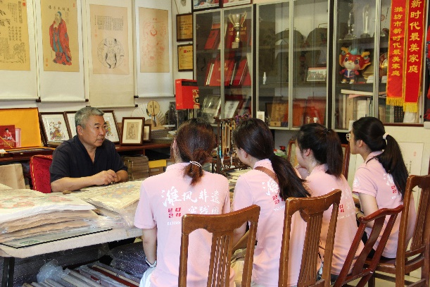 范会长向实践团成员详细介绍了山东省的非遗文化、实验区的成立情况、协会的由来,更深入讲解了齐鲁文化的精髓以及潍坊市历代名人的风采。范会长还特别强调了潍坊市在非遗传承保护方面所做出的努力。整个交流过程生动有趣,充满了文化于智慧的气息,范会长为实践团成员带来了一堂别具一格的非遗文化课程。