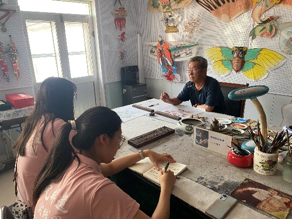 实践团成员拜访了西杨家埠村的村支书,深入了解这个有着“国家非物质文化双遗产村”名号的村落。西杨家埠村不仅集民间年画与风筝于一体,更是世界上唯一一个同时拥有这两项非遗项目的村庄。村支书向实践团成员介绍了推动非遗发展的一系列措施,其中包括打造文化街、鼓励手艺人以家庭为单位进行传承、提供资金和政策支持以及建立文创公司等。