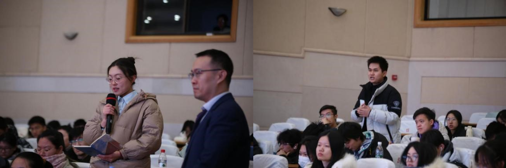 在互动交流环节,现场师生踊跃提问,气氛十分热烈。两位教授分别进行了详细解答,为与会人员提供了宝贵的思路与启示。