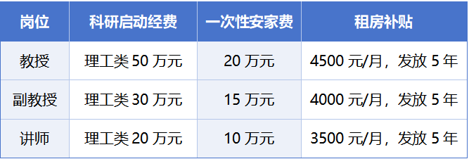 (3)科研启动费、安家费、租房补贴等根据受聘岗位按“优秀师资补充计划”相应标准兑现