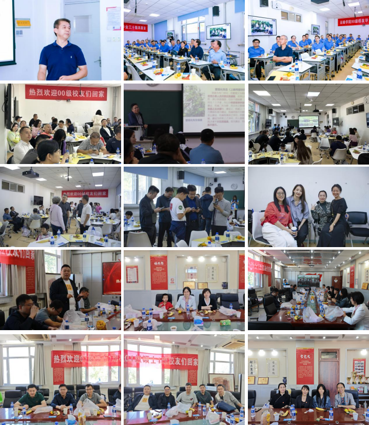 合影结束后,校友们回到第八教学楼进行座谈会。大家一起观看了学院制作的回忆视频,昔日的场景仿佛再次浮现在眼前,温情与共鸣在心中荡漾。寒暄与笑谈之间,珍贵的同窗情谊被重新唤醒。
