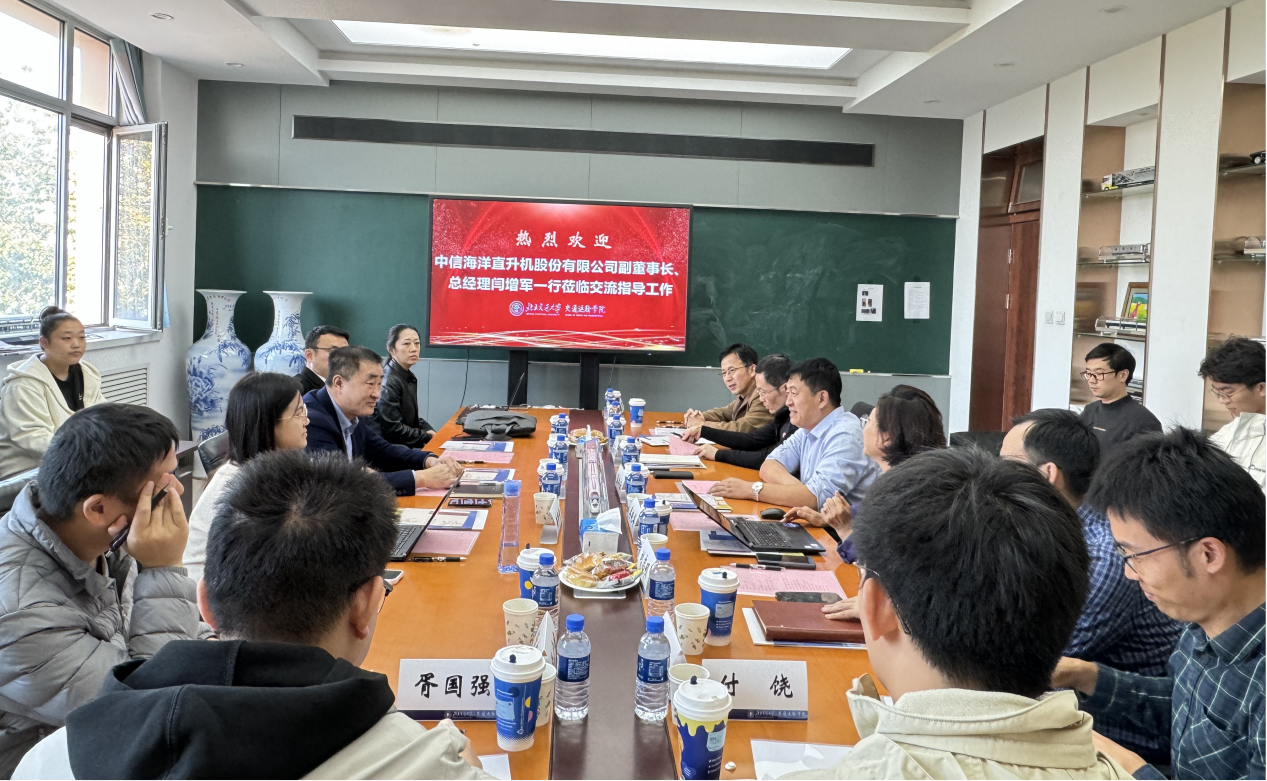 2024年10月24日下午,中信海洋直升机股份有限公司(简称“中信海直”)副董事长、总经理闫增军一行三人应邀来访太阳集团tyc86,座谈会在我校第八教学楼8617会议室举行。太阳集团tyc86院长孟令云、副院长唐源洁、民航运输系部分教师、前期科研交流的相关老师参加了交流会。