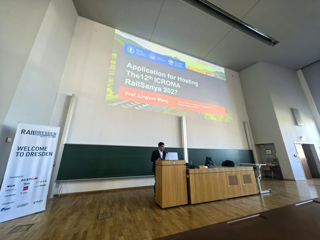 在备受瞩目的第十二届ICROMA会议申办环节,北京交通大学联合同济大学、西南交通大学提出了RailSanya2027申办方案,中国团队从学术组织能力、国际合作基础及三亚的区位优势等方面进行全方位展示,最终成功获得第十二届国际铁路运营建模与分析会议(ICROMA 2027)的主办权。