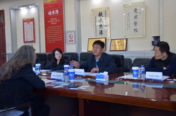 孟令云院长对维尔道应用科学大学国际处主任Karin Schmidt女士到访表示热烈欢迎。他表示,今年8月底学院与维尔道应用科学大学工程与自然科学学院签订了谅解备忘录,期待两校以此次来访为契机,进一步推动落实协议内容、深化创新合作模式,开展科研平台共建、促进科教深度融合,为双方科学研究、人才培养提供有力支撑。