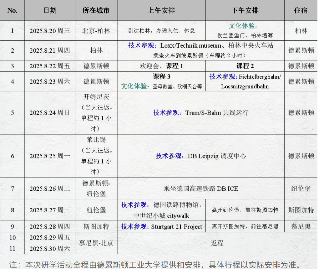 - 专业不限,但注意课堂讲座和技术参观主要围绕轨道交通规划管理、信号控制等内容;