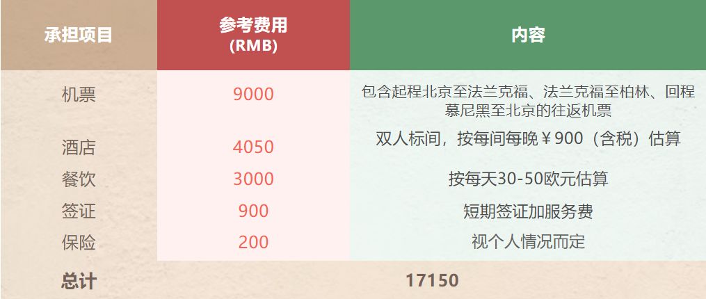 - 身⼼健康,有较强环境适应能力,英语能力优秀,能顺利完成在德学习任务,撰写总结报告,硕博士生将获得2-4学分(2学分国际课程、2学分前沿讲座);