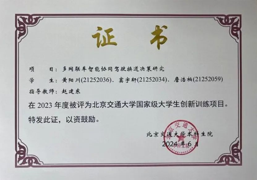 大三下学期,黄阳川在王江峰教授的一门课“智能交通”中收获颇丰,课程上关于该领域的讲解使他产生了较强的兴趣。正巧课程设计需要撰写论文,于是在小组的共同努力下,小组成员依托课设,利用学期结束后的暑假对该课题进行了更深入的研究,最终黄阳川作为第二作者身份撰写了论文,目前已在期刊“Journal of Circuits,Systems, and Computers”(SCI 四区)发表。以第一开发者身份开发的软著目前已被中国版权中心受理。