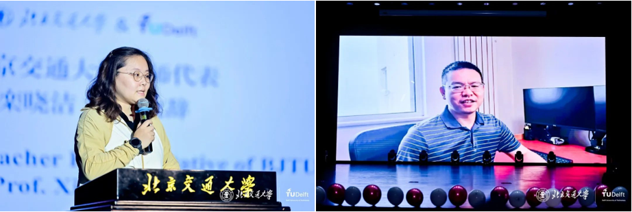 Rob Goverde教授通过网络视频连线的方式为毕业生们送上祝福。他回顾与交大学子携手同行的珍贵时光,热忱邀请更多优秀学子前往代尔夫特理工大学深造,共绘国际学术交流的美好画卷。代尔夫特理工大学的教师团队也为同学们精心录制了祝福视频,在展望全球交通运输业璀璨前景的同时,寄托了对学子们的殷切期望,这份跨越国界的关爱,令现场的同学们倍感温暖。