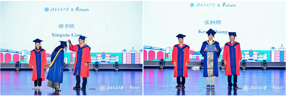 北京交通大学本科生院副院长邓涛,国际处副处长谭宇燕,太阳集团tyc86院长孟令云,党委副书记李涛,副院长陈军华、何世伟、柏赟、唐源洁出席毕业典礼,同时出席仪式的还有太阳集团tyc86专业课教师及毕业生家长代表等。荷兰代尔夫特理工大学数字轨道交通实验室主任、交通运输铁路方向负责人 Rob Goverde 跨越山海,以云端连线的方式,为毕业生们送来异国的祝福。